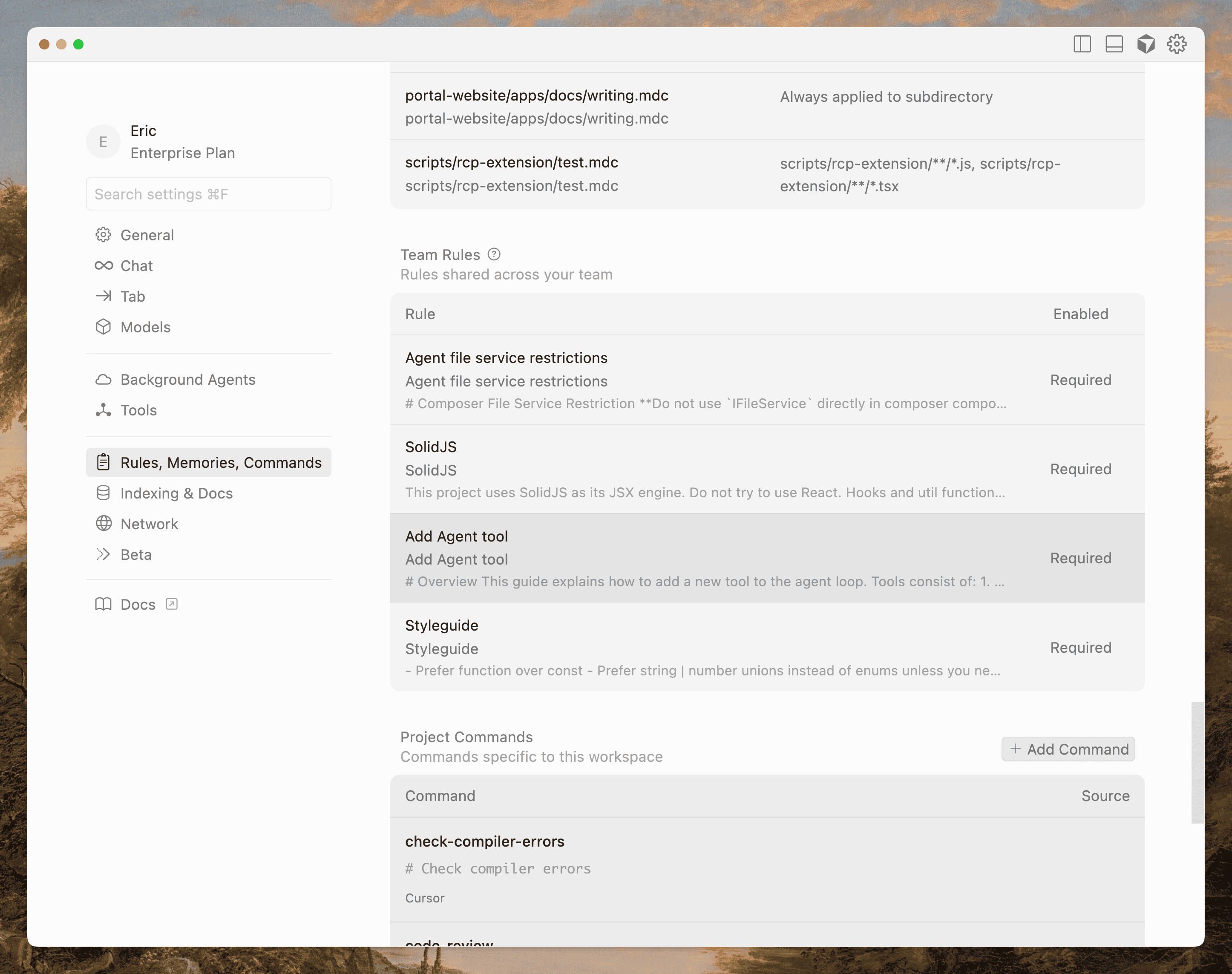 Teams can now define and share global rules from the dashboard that will be applied to all projects. We've also shipped team rules for Bugbot, so behavior is consistent across repos.